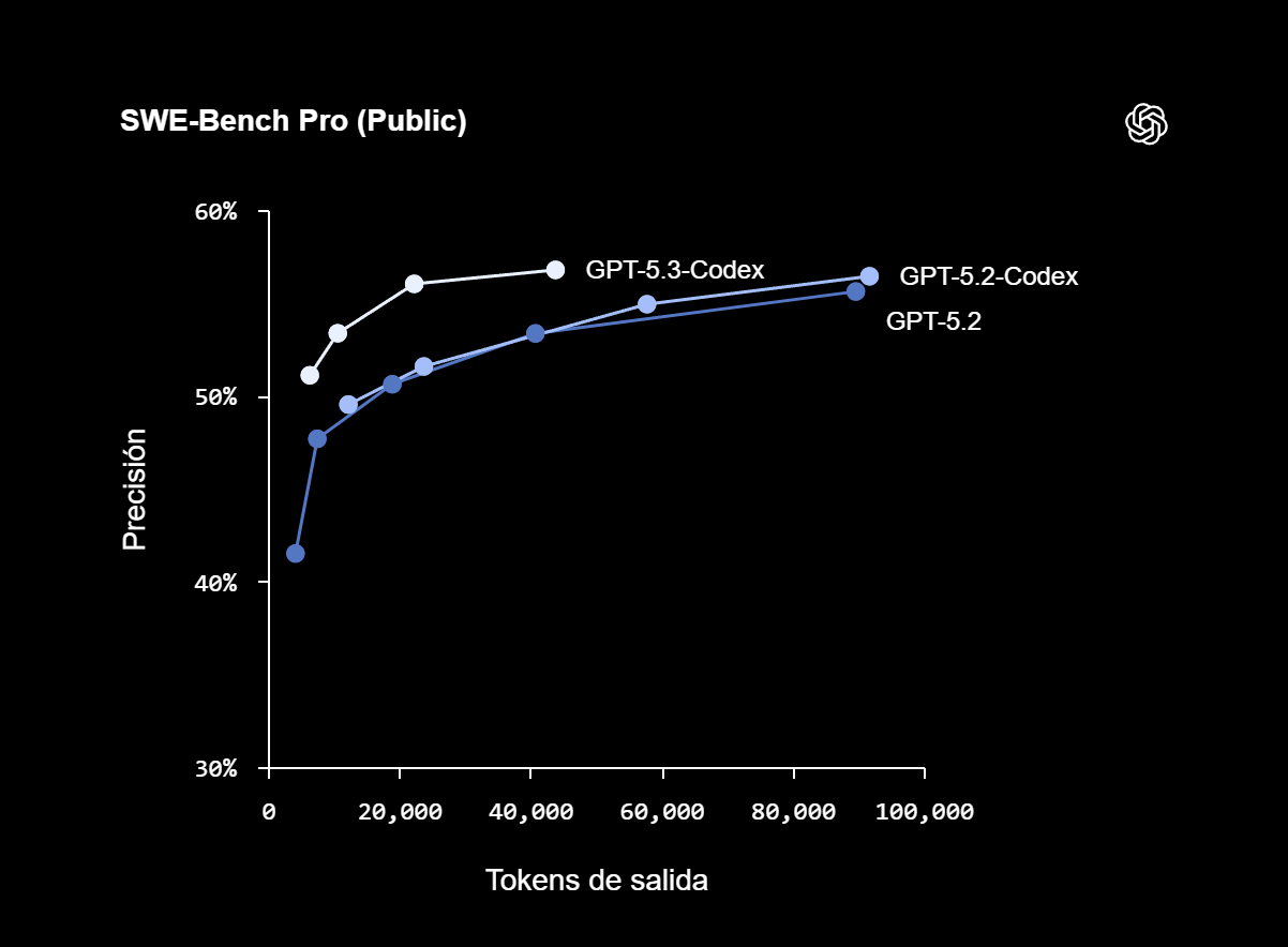 | Velocidad | 25% más rápido que GPT-5.2-Codex |