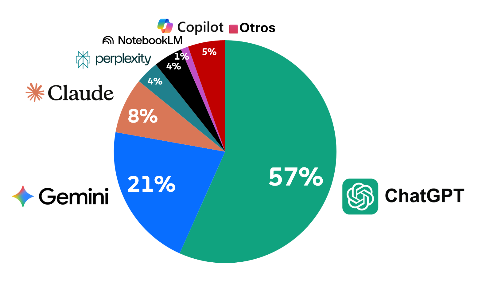 - ChatGPT sigue siendo el estándar (57% como #1), pero más por inercia y lock-in que por superioridad clara.