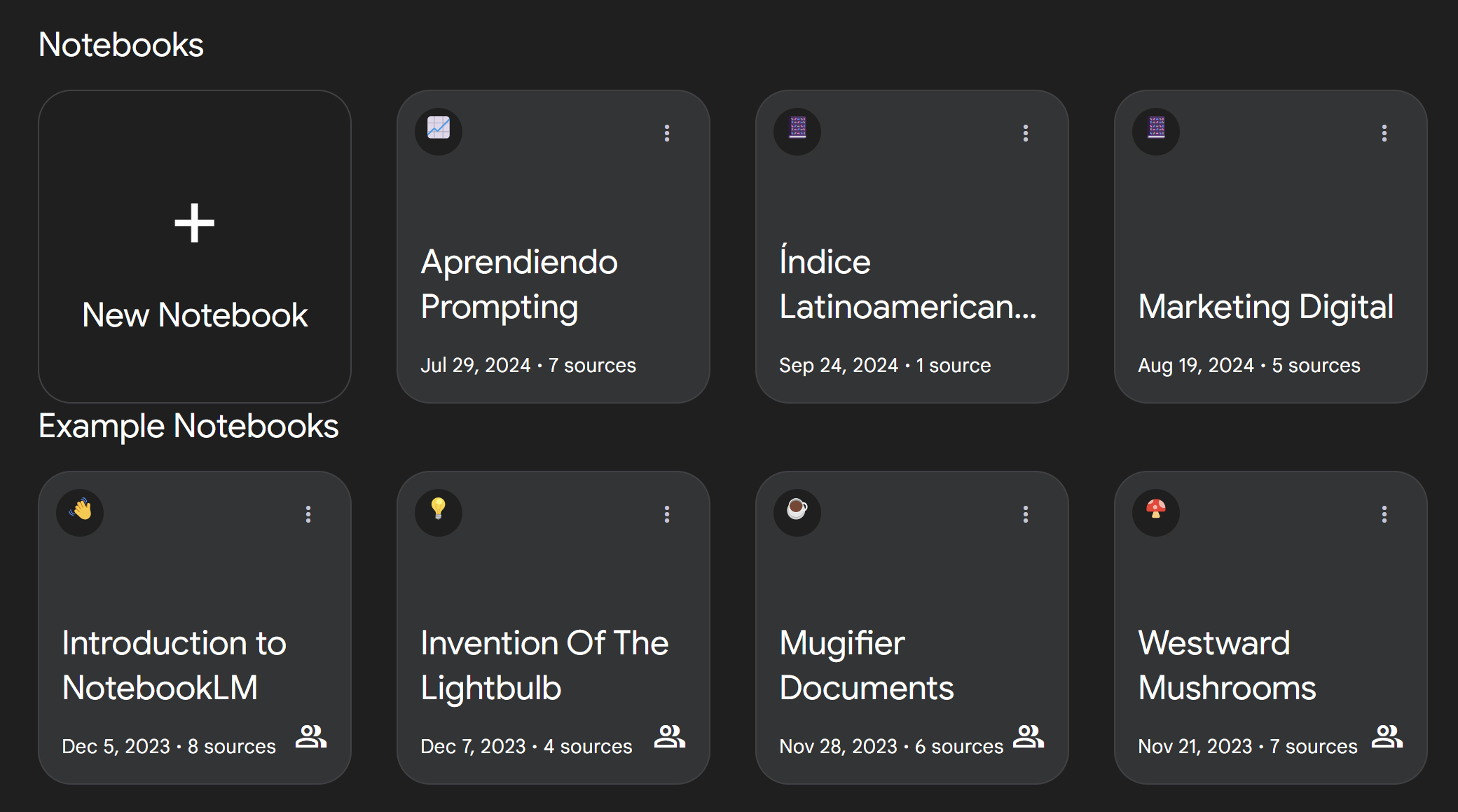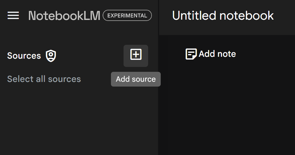 En caso de que ya tengas un cuaderno creado, tendrás que hace click en el botón + que se unica en la parte superior izquierda de NotebookLM