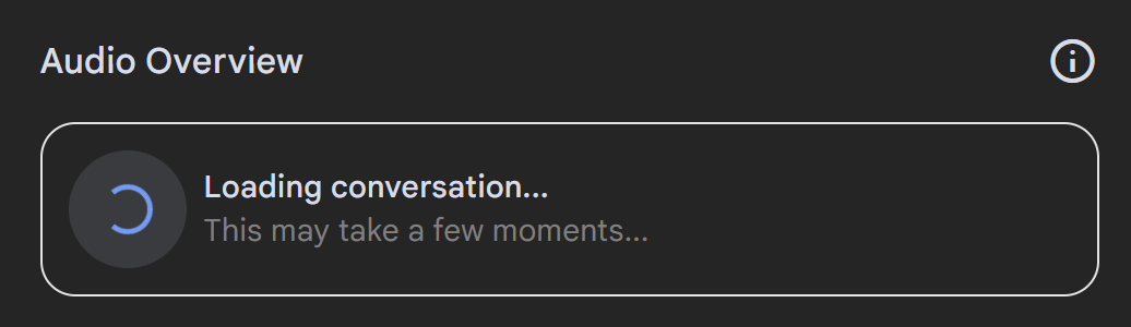 Luego harás clic en el botón "Load" de Audio Overview, esto hará que NotebookLM empiece a crear por detrás un guion de la conversación en base a tus fuentes, al que luego le dará forma de podcast y lo convertirá en una conversación de audio.