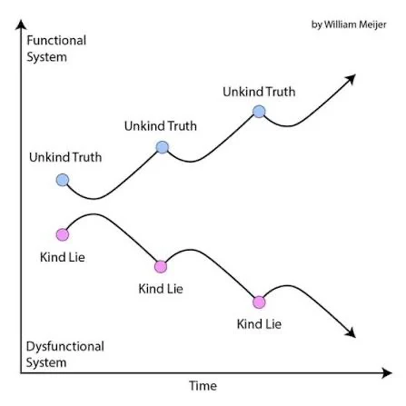 Soy un convencido de que hay que decirse las cosas como son, aunque a veces duelan, de forma que el "sistema" siga creciendo. Pero si nos ocultamos cosas, no somos transparentes, y eso nos lleva a darnos un "falso apoyo", al final lo que hacemos es crear una cultura organizacional condenada al fracaso.